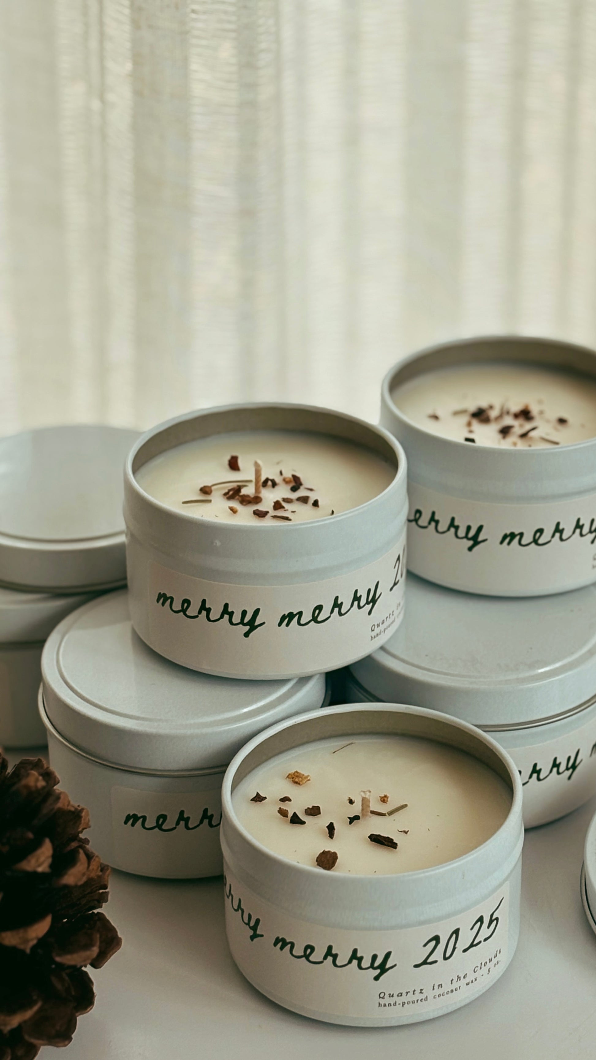 Hand-poured coconut wax infused with quartz crystals & all natural, toxin-free fragrance oils.