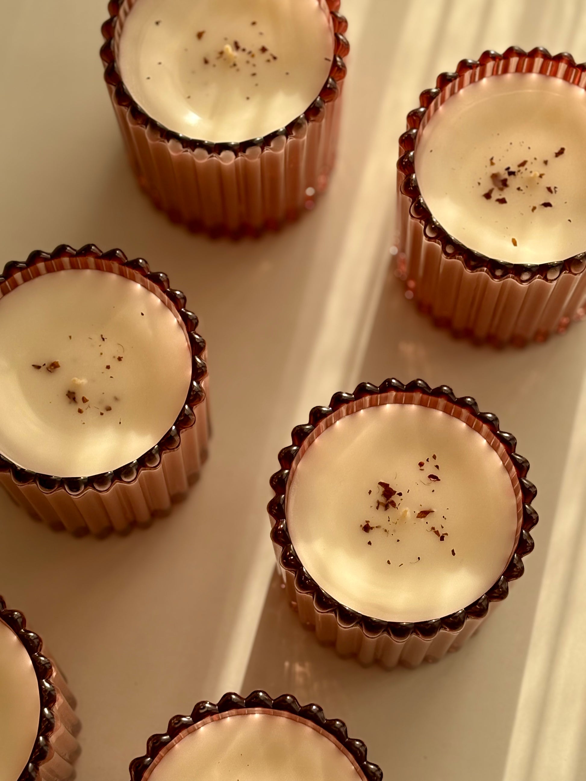 Featuring a lovely luxe pink glass vessel, hand-poured with our favorite soy-free coconut wax infused with non-toxic fragrance oils.